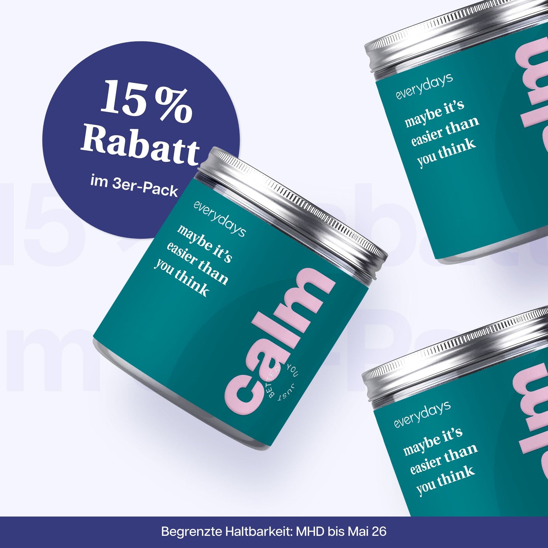 Wenn du keine Wirkung spürst oder das Produkt nicht verträgst, melde dich einfach bei uns unter service@everydays.de. Sind alle Packungen geöffnet, ist eine Rückerstattung des vollen Kaufpreises nicht möglich.