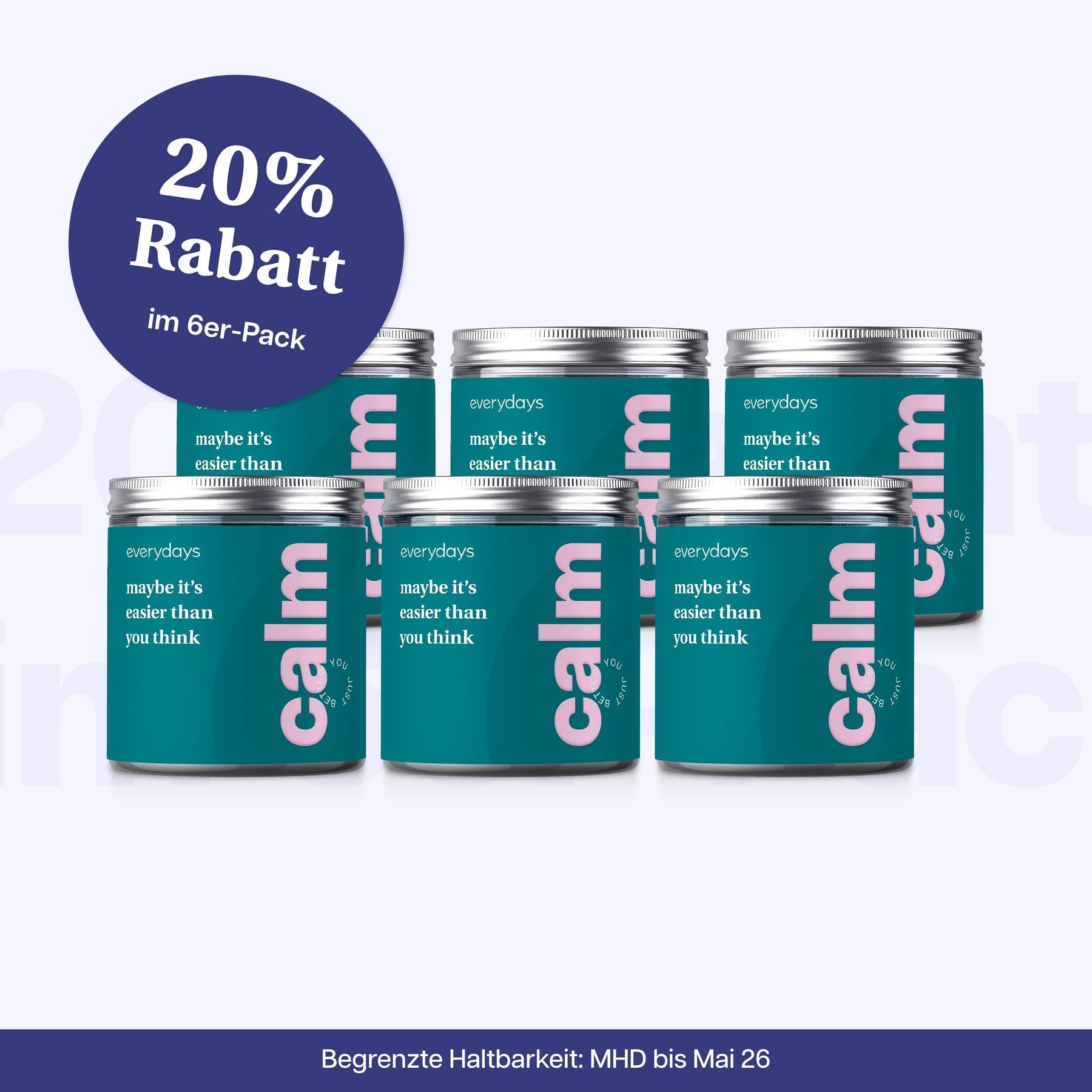calm ist Dein pflanzlicher Drink mit GABA, Ashwagandha, Magnesium, L-Theanin und weiteren adaptogenen Pflanzenextrakten. Mit sorgfältig ausgewählten Pflanzenstoffen – angenehm im Geschmack & schnell löslich.